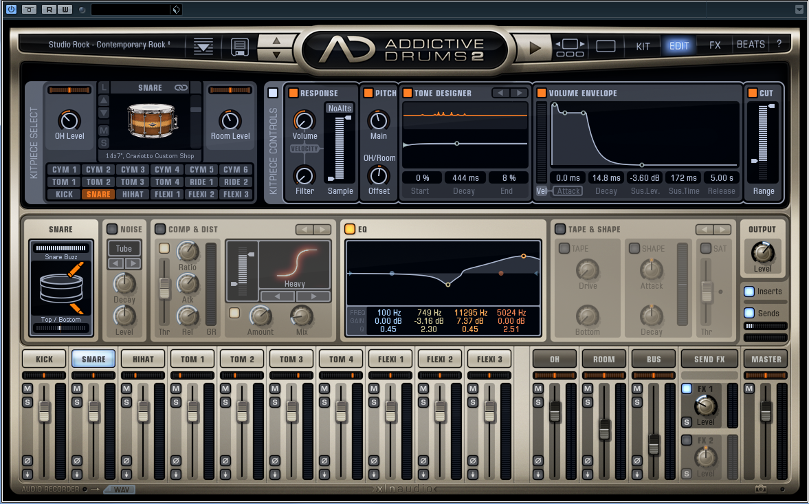 AD2のバスドラ、スネアは新しい内蔵エフェクトを使って若干弄っています。